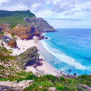 Vom Boulders Beach fahren wir nur noch 30 Minuten weiter Richtung Südspitze der Kap-Halbinsel. Hier liegt das mystische und sagenumwobene Kap der guten Hoffnung (Cape of Good Hope). Fast alle Touristen, die 10.000 Kilometer aus Europa nach Kapstadt geflogen sind, kommen hierher. Auch die weltbekannte Legende um den „Flying Dutchman“ („Fliegender Holländer“) findet hier ihre Wurzeln. Denn der Kapitän des holländischen Schiffes, Hendrik van der Decken, schwor 1680 bei stürmischer See, „dass er das Kap umrunden würde und wenn er auf die Hilfe des Teufels zurückgreifen müsse“. Doch auch dieser konnte oder wollte ihm nicht helfen, und der „Flying Dutchman“ verschwand ohne Spuren. Er war von nun aber dazu bestimmt, immer wieder im Nebel aufzutauchen, fliegend und mit zerstörten Aufbauten und Segeln, um andere Seefahrer zu warnen, vielleicht auch, um sie zu erschrecken. Seither behaupten Seefahrer immer wieder, das sagenumwobene Schiff gesichtet zu haben, unter ihnen auch der spätere englische König George V. Daran, dass die Warnung auch heute, in Zeiten moderner Navigationstechniken, noch Bedeutung hat, erinnern zahlreiche Schiffswracks an den Ufern des Nature Reserve, das letzte stammt von 1972. Von einigen Wracks sind immer noch Überreste zu sehen. Die gefährlichen Winde und die zerklüftete Felsenlandschaft im Meer machen diese Küste zu einer echten Herausforderung für Kapitäne. Hier wo der Indische auf den Atlantischen Ozean trifft, hat sich, nicht zuletzt aufgrund der Seefahrer-Geschichte, ein schicksalshafter Ort entwickelt. So werden die Schicksalsuchenden inzwischen scharenweise in Bussen angekarrt. Die meisten wollen nur das eine Foto vom weltberühmten Kap der guten Hoffnung bzw. einem simplen Holzschild. Dementsprechend bilden sich hier Warteschlangen. Auch wir reihen uns ein, wenn wir schon einmal hier sind. Aber dann verschwinden wir schnell aus dem Gewühl und widmen uns wieder der wunderschönen Natur Südafrikas. Denn das eigentliche Highlight liegt hinter der Holztafel. Zum Glück bleiben aber die meisten Besucher dort hängen, so dass wir die tolle Landschaft fast alleine genießen können. Oberhalb des Schildes führt uns ein atemberaubender Pfad hinauf entlang der Küste zum Cape Point und dem Cape Point Leuchtturm. Auf der etwa 1,5 sündigen Küstenwanderung erhalten wir atemberaubende Ausblicke auf die steilen Klippen, die wilde Landschaft mit frechen Baboons (Affen) und das Meer mit einem echten Traumstrand, welcher über Treppen erreichbar ist. Obwohl der Eintritt mit etwa 10 Euro pro Person nicht gerade günstig ist, wird man doch mit einer sensationellen Küstenlandschaft entschädigt, sofern man das Holzschild des Cape of Good Hope hinter sich lässt und den Cape Point erwandert.